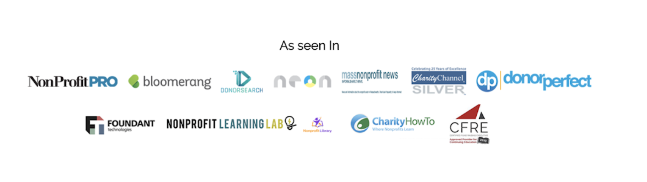 Her writing has appeared in Nonprofit Pro, Massachusetts Nonprofit News, Charity Channel, Bloomerang, Donor Search, Nonprofit Expert, Donor Perfect, Nonprofit Learning Library, and many other blogs.